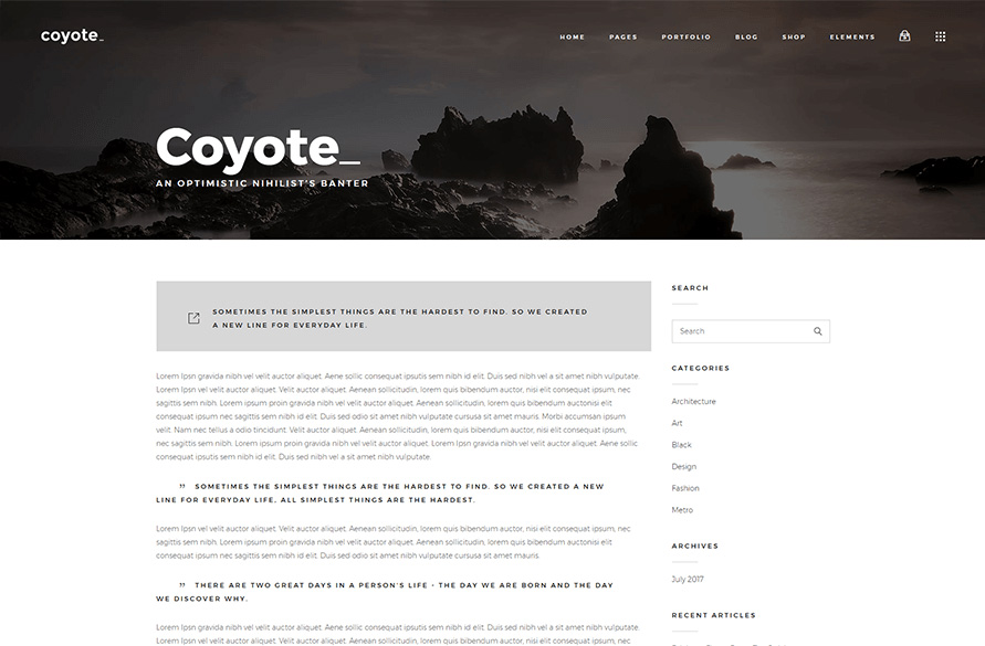 Coyote comes with a fine assortment of fully customizable homepage layouts for all your needs.